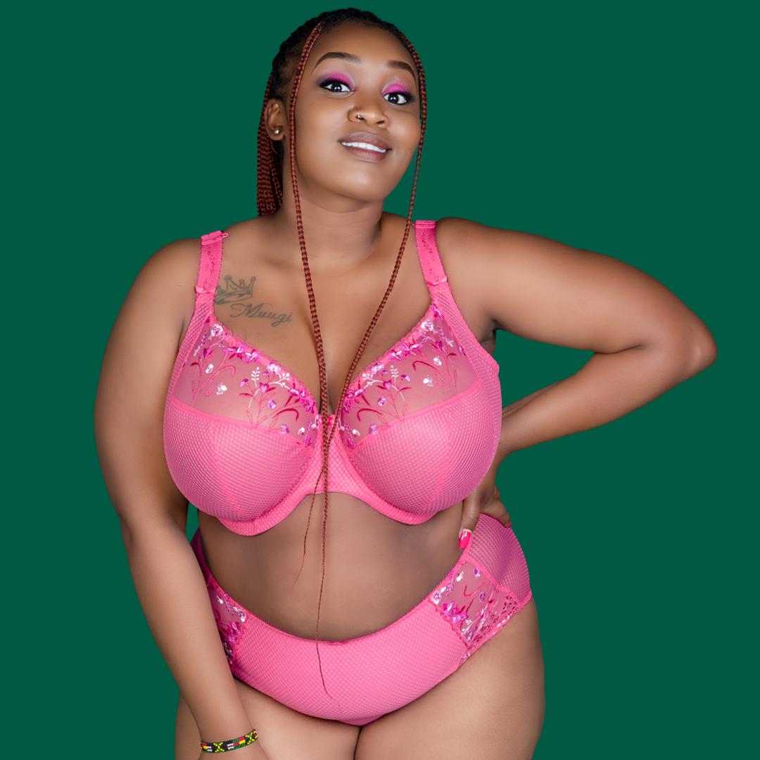 Pink, non-padded, underwire bra. Features an additional J-Hook attached to the straps that convert the bra into a racerback design concealing the straps when wearing an outfit that has a racerback design.