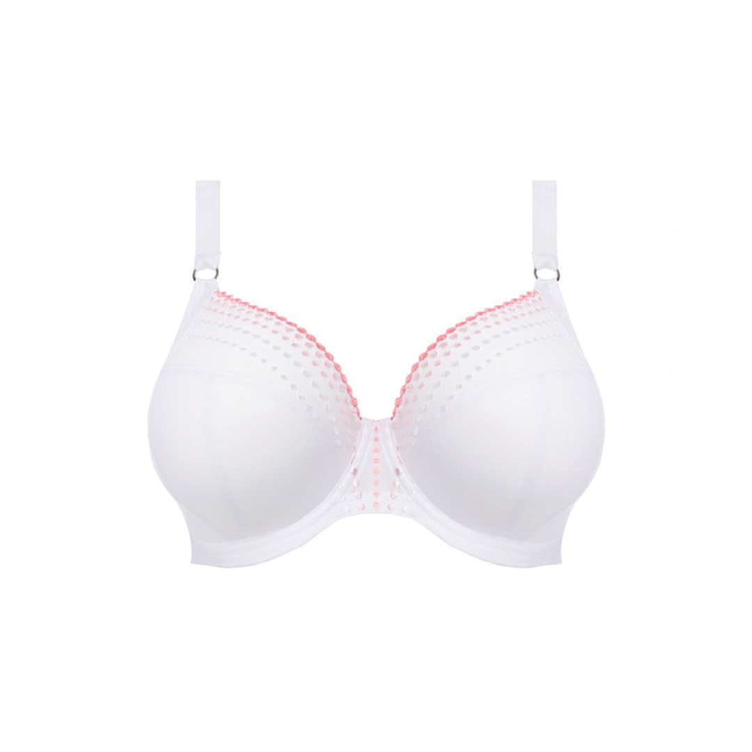 White, non-padded, underwire bra. Features an additional J-Hook attached to the straps that convert the bra into a racerback design concealing the straps when wearing an outfit that has a racerback design.